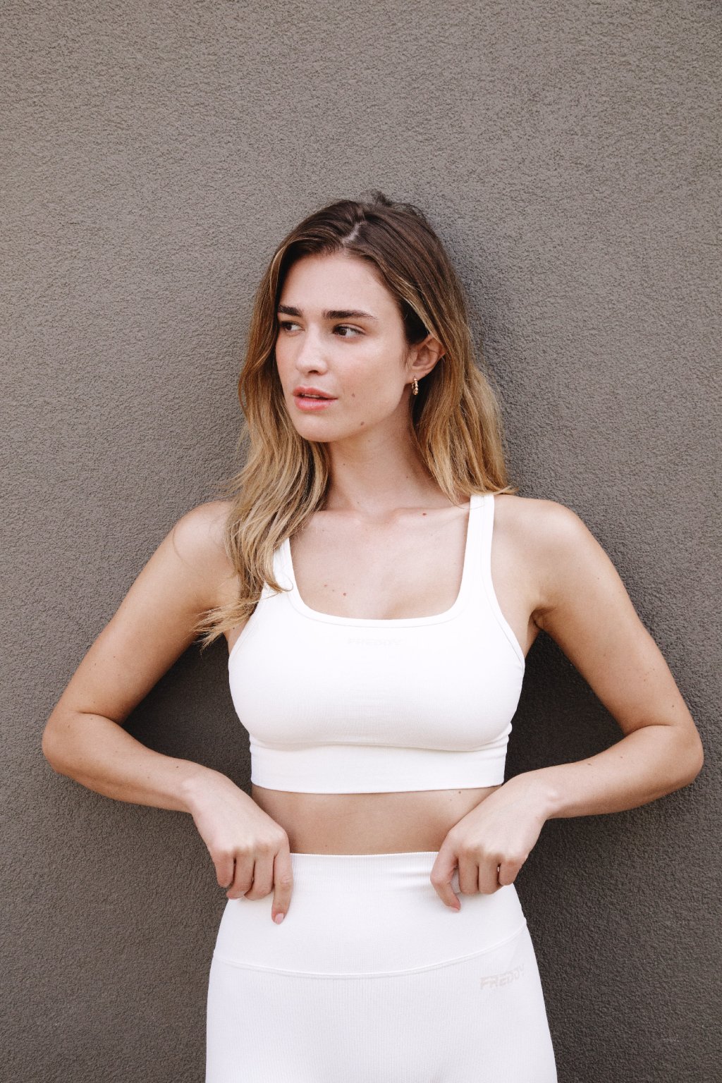 Nőies és kényelmes kialakításának köszönhetően ez a könnyű tartású sportmelltartó ideális jógához és alacsony intenzitású mozgásokhoz. Elöl szív alakú nyakkivágással, hátul szögletes kivágással és normál vállpántokkal készül. A teljesítményorientált nylon jersey anyag puha, légáteresztő és könnyű, az elején pedig egy kontrasztos FREDDY logó található.