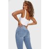 7/8 hosszúságú, extra magas derekú farmer nadrág kék varrással, 3 gombbal