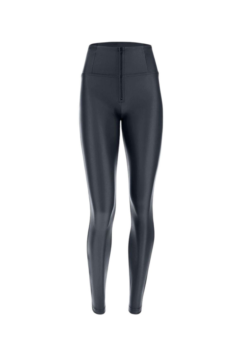 WR.UP® Antracit szürke színű magas derekú műbőr nadrág, cipzárral