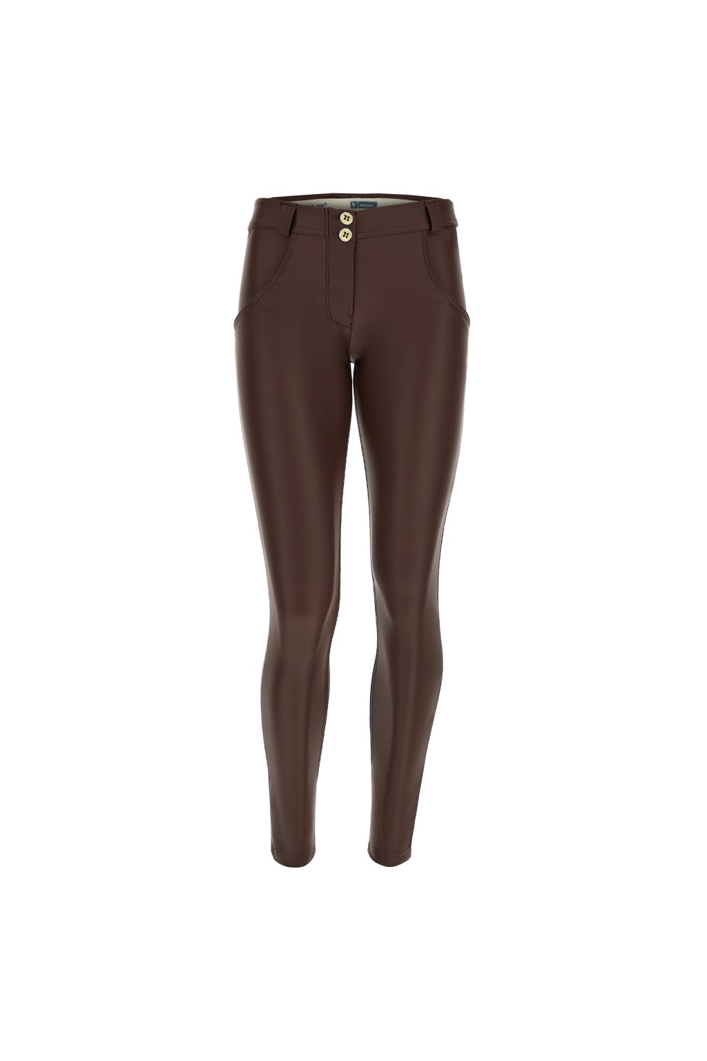 WR.UP® Barna superskinny műbőr nadrág, normál derekú