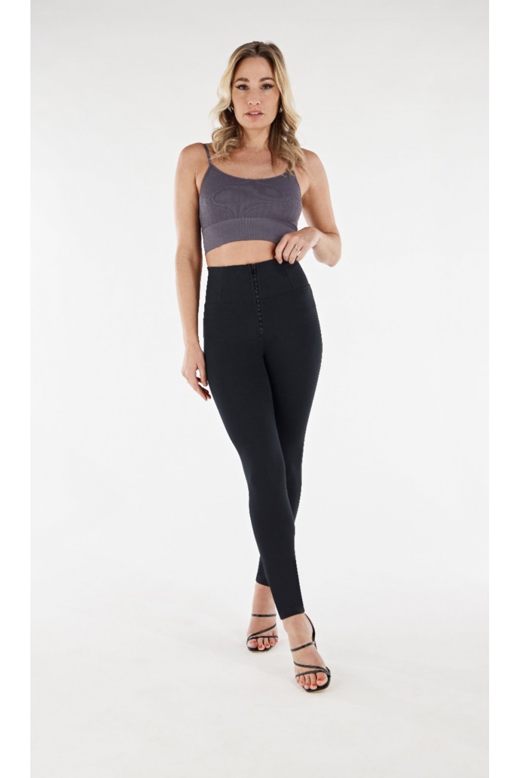 Fekete extra magas derekú pamutnadrág cipzárral organikus anyagból