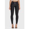 Fekete magas derekú farmer, fekete varrással, gombokkal, superskinny szabás
