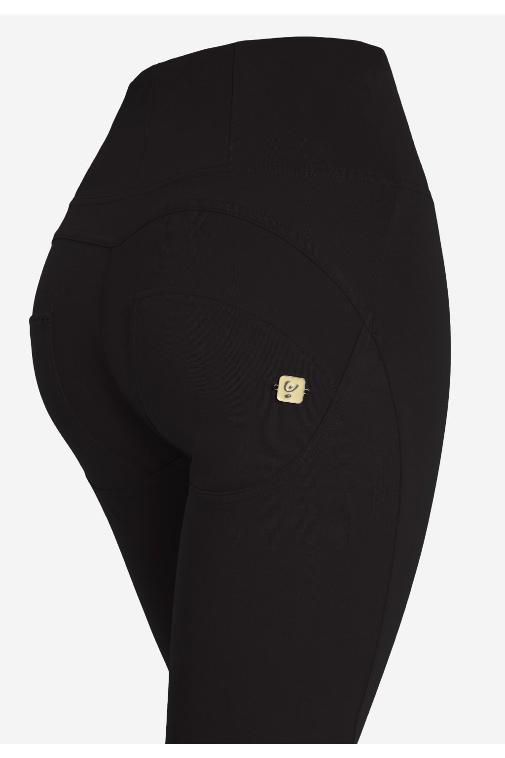 WR.UP® nadrág sztreccses organikus pamutból, superskinny szabással, hogy maximálisan illeszkedjen a test kontúrjaihoz. A modell magas derékkal, azonos színű, jól látható cipzárral és szorosan illeszkedő alsórésszel rendelkezik. Kényelmes ruhadarab, amely az alak kiemelésére szolgál a Freddy szabadalmaztatott WR.UP® technológiája által kínált kellemes formázó hatásnak köszönhetően.