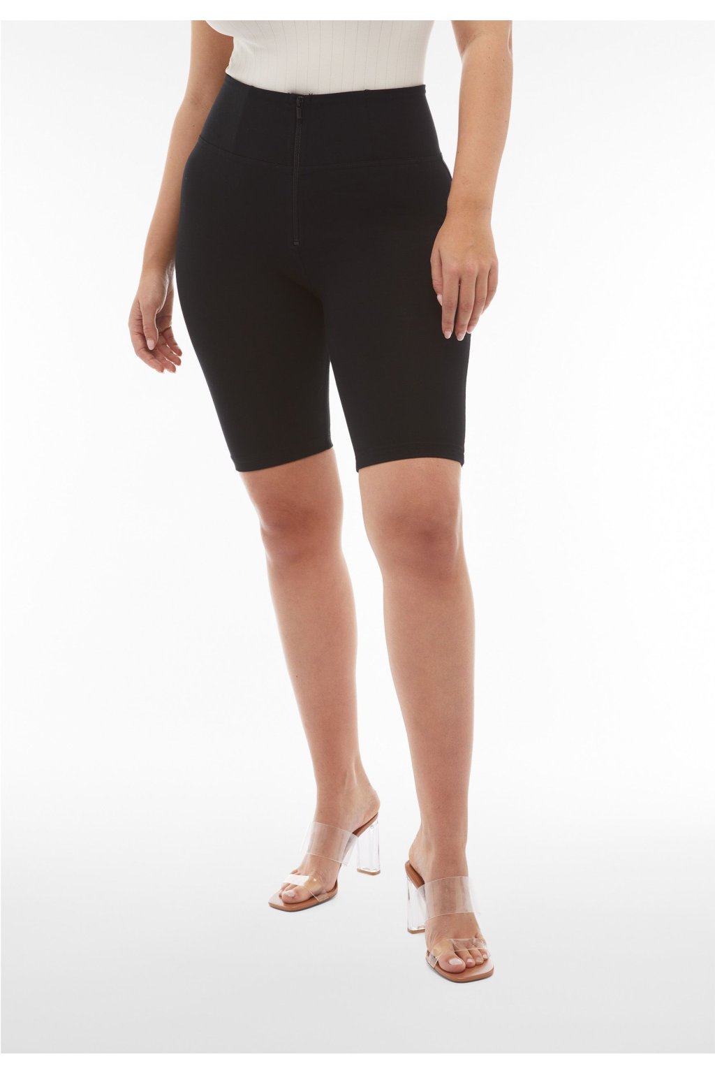 Fekete színű magas derekú BIKE pamut rövidnadrág cipzárral