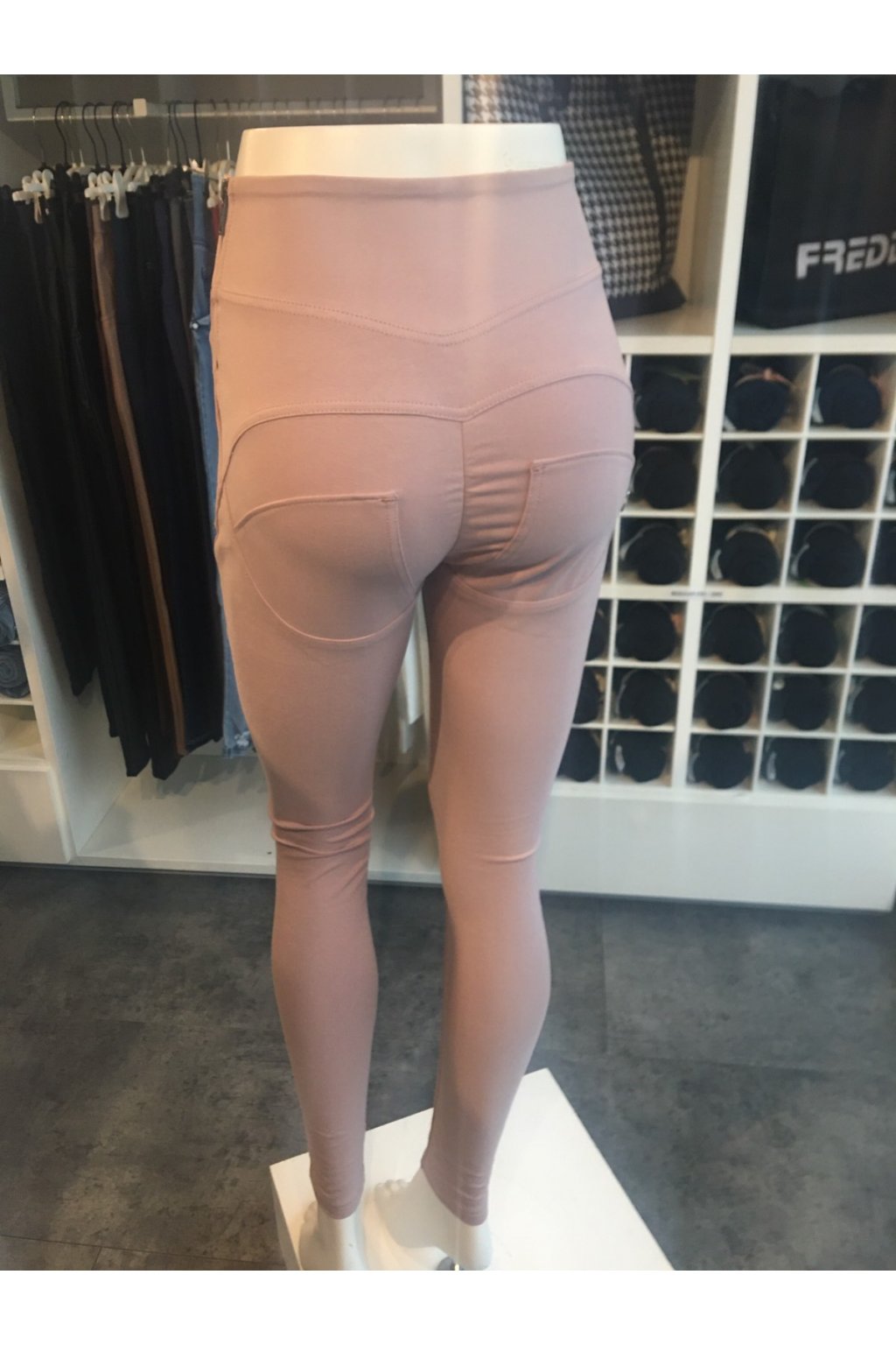 WR.UP® Halvány rózsaszín magas derekú pamut nadrág cipzár és gombok nélkül