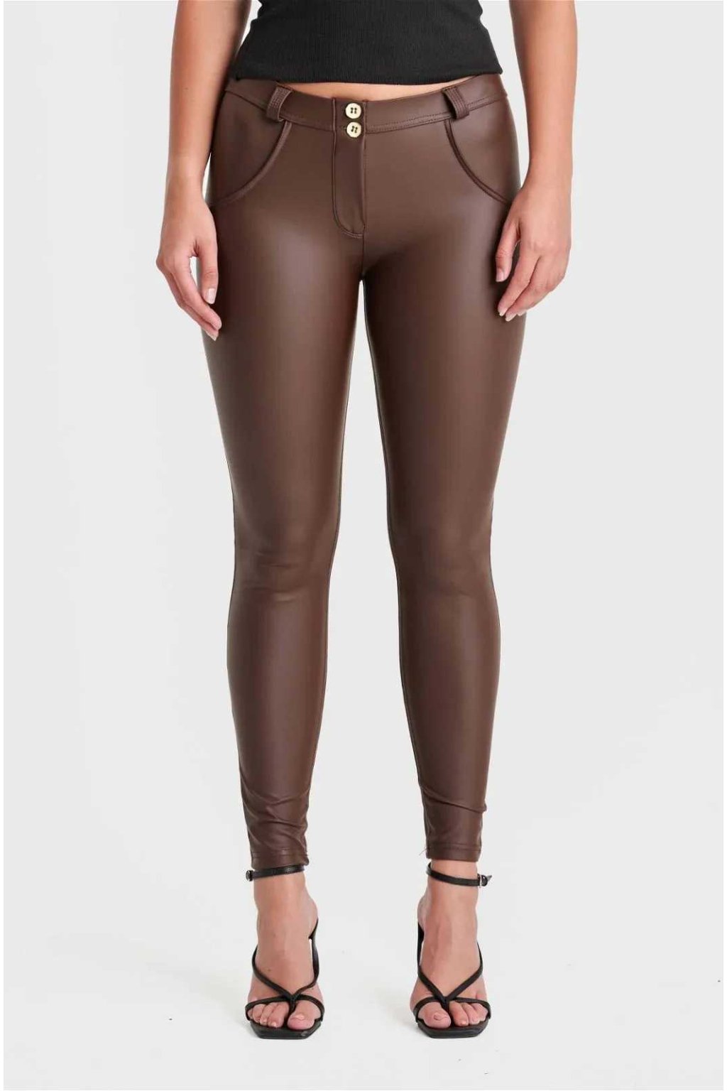 WR.UP® Karamell barna superskinny műbőr nadrág, normál derekú