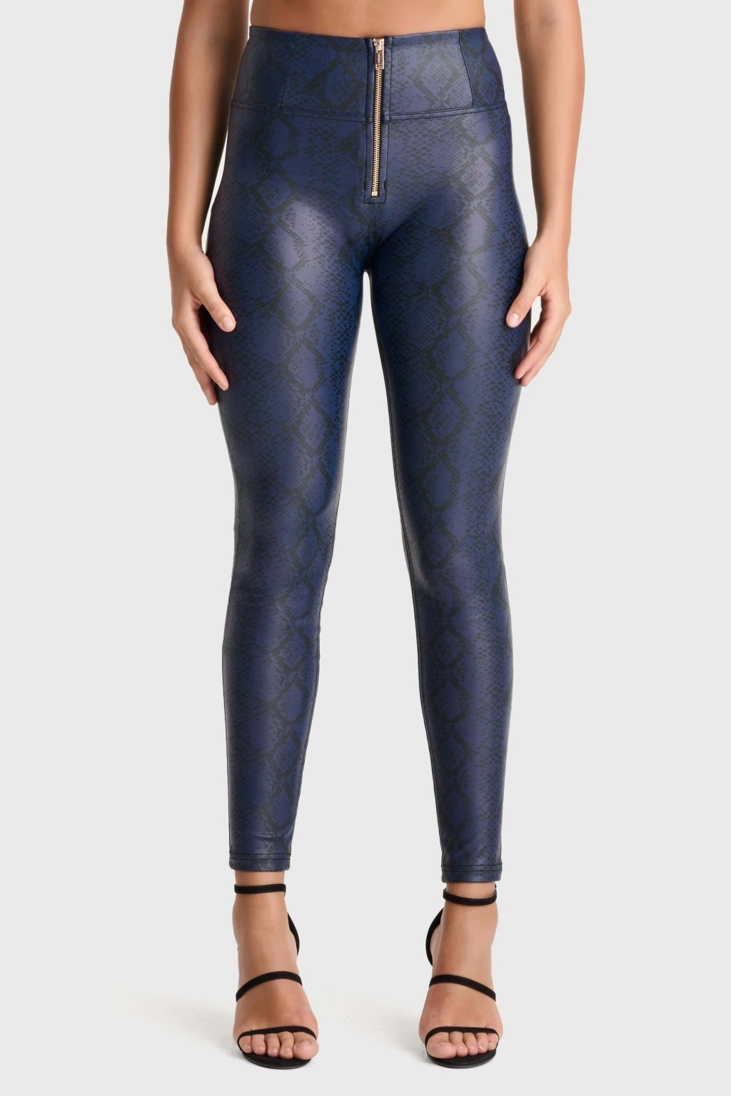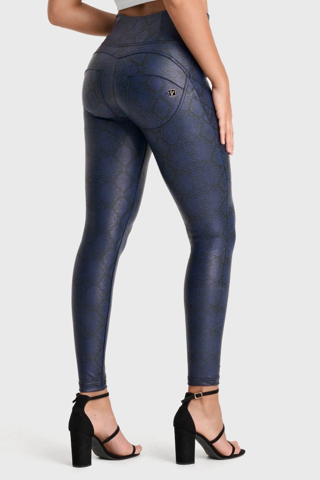 WR.UP® Kék magas derekú kígyóbőr mintás műbőr nadrág RE(MOVE)