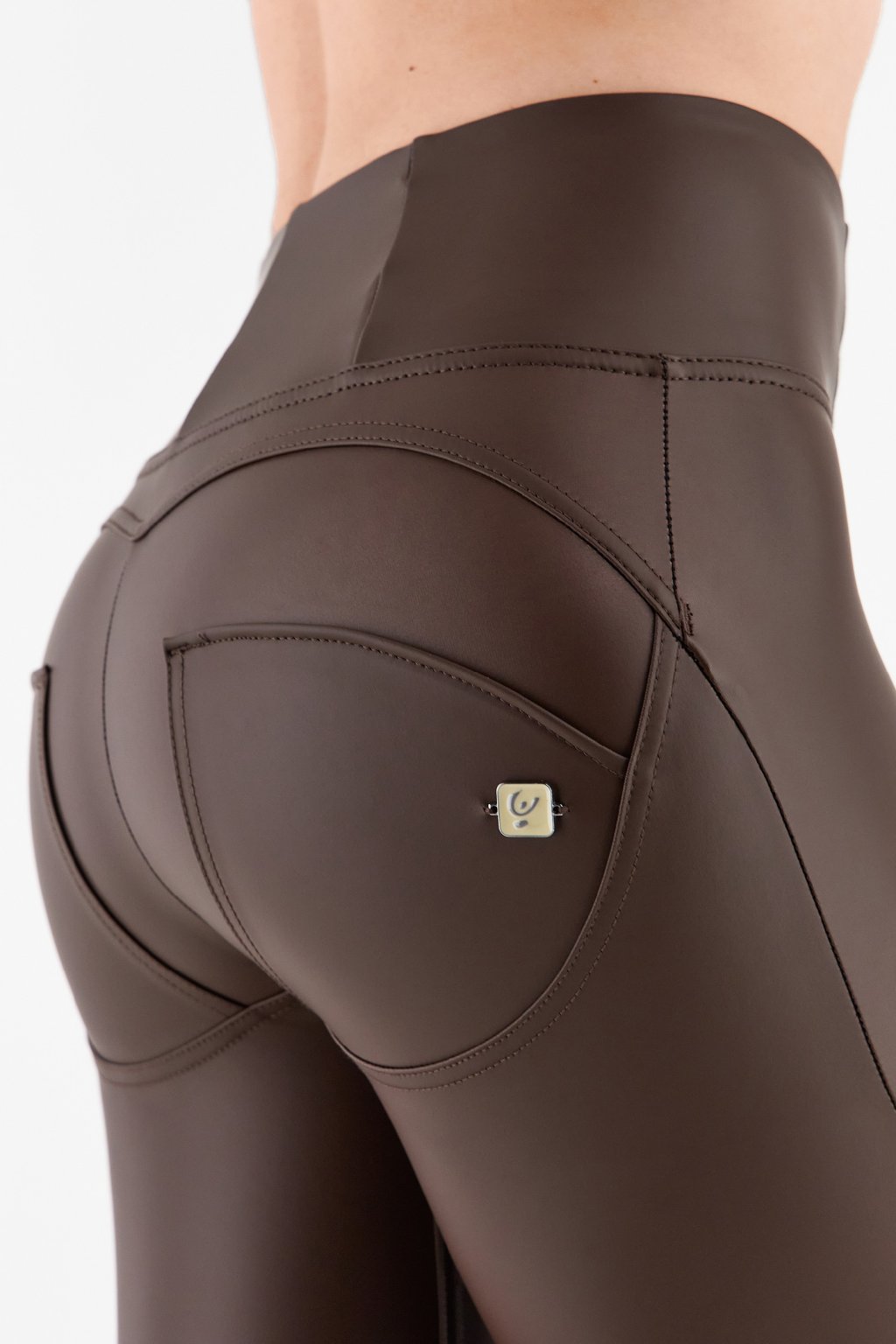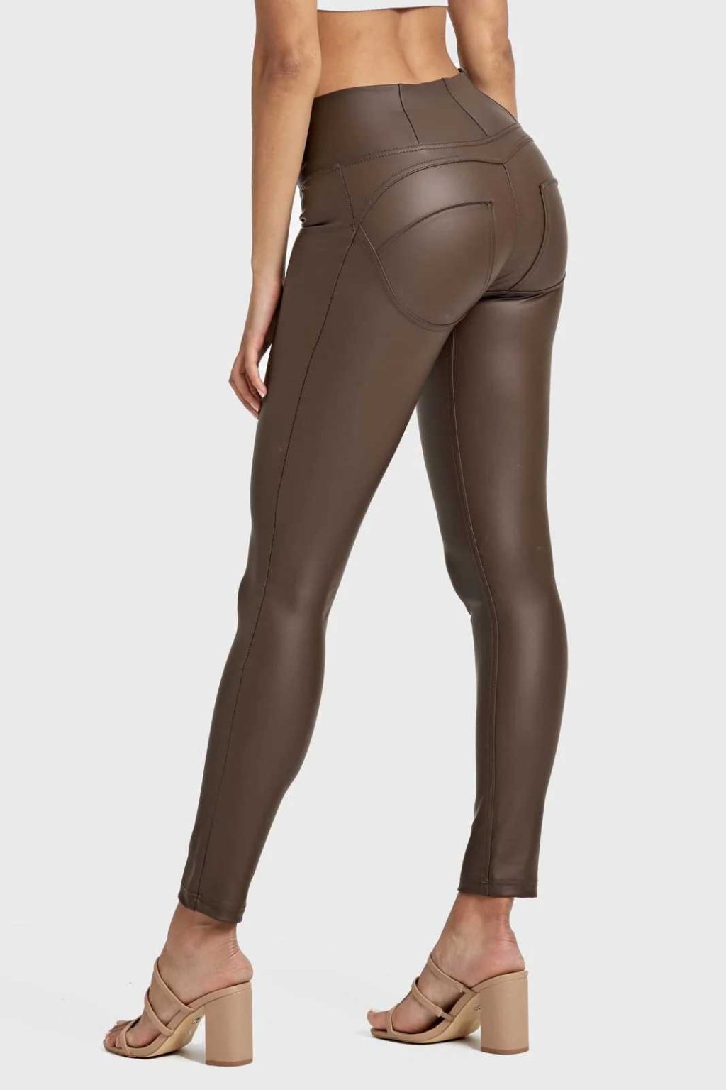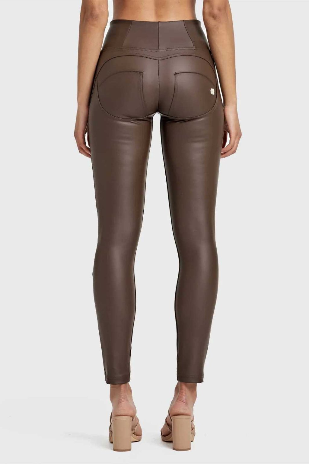 WR.UP® Barna magas derekú műbőr nadrág, superskinny szabás