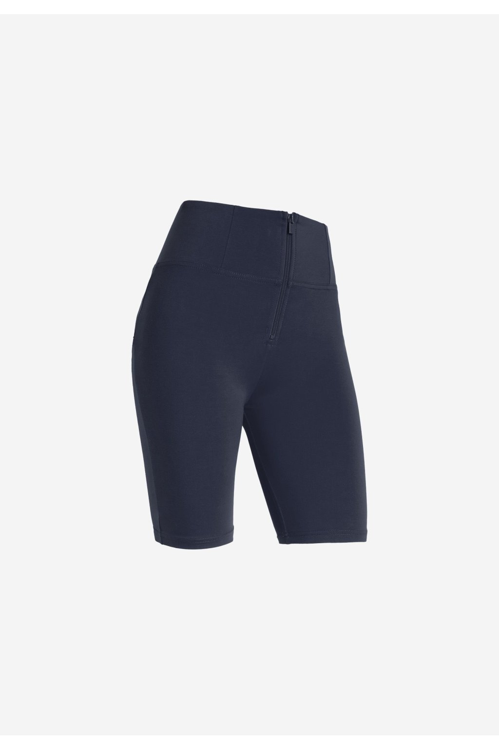 Sötétkék színű magas derekú BIKE pamut rövidnadrág cipzárral